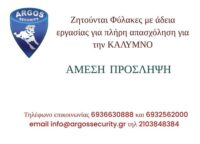 Ζητούνται Φύλακες για πλήρη απασχόληση στην Κάλυμνο