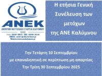 Η ετήσια Γενική Συνέλευση των μετόχων της ΑΝΕ Καλύμνου στις 10 Σεπτεμβρίου με επαναληπτική σε περίπτωση μη απαρτίας στις 30 Σεπτεμβρίου 2025
